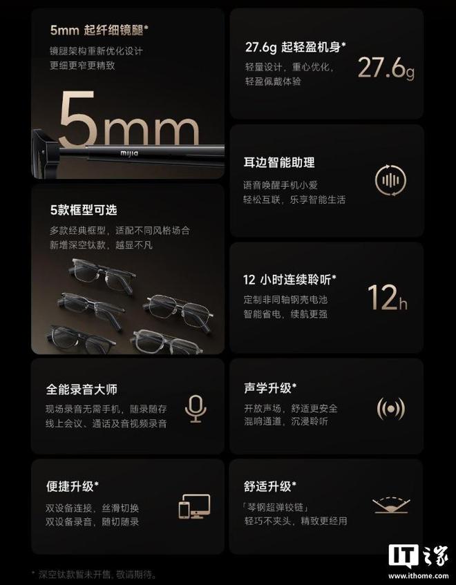 据IT之家今日早些时候报道,小米 MIJIA 智能音频眼镜 2 今日 10:00 开启众筹,建议零售价 1199 元、众筹价 999 元(点此购买)。