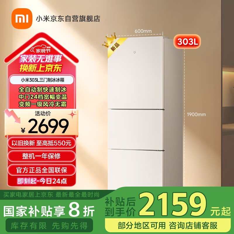 米家MIJIA BCD - 303WMSA冰箱,plus会员优惠价2159元