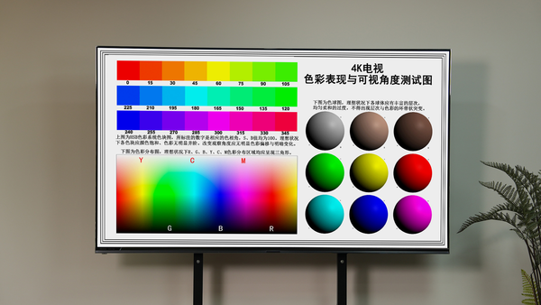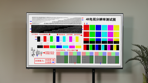 为了更直观地展现E8Q Pro通过上述升级对于画质的提升,我们使用海信E8Q Pro进行了几项基准测试,在“4K分辨率”测试中,文字边界清晰,色彩颜色鲜明,凑近看文字细节,可以看到显示效果非常清晰,本身4K分辨率的清晰度是没有问题的。