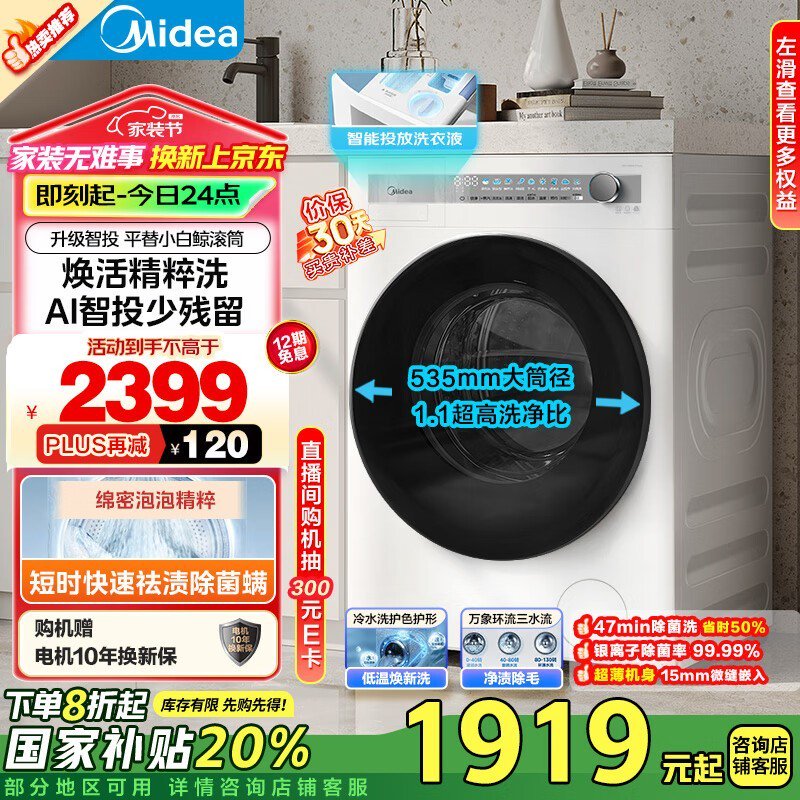 美的MG100AIR1PLUS滚筒洗衣机到手价1239元