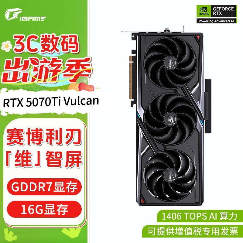 七彩虹COLORFUL RTX5070 Ti 16G显卡京东优惠价8999元
