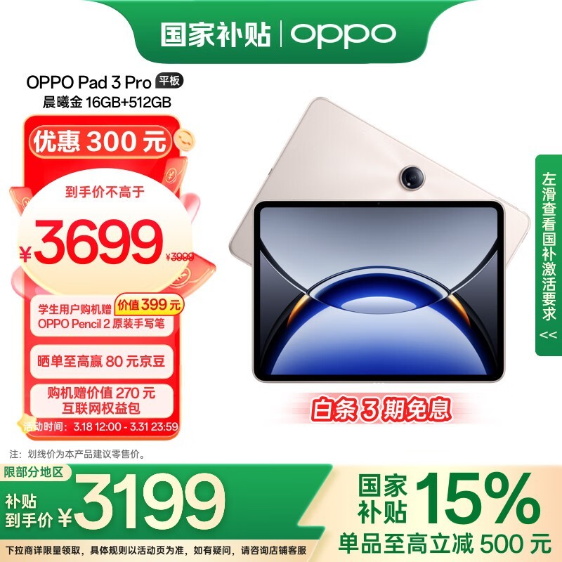 OPPO Pad 3 Pro 12.1英寸平板电脑京东好价3199元