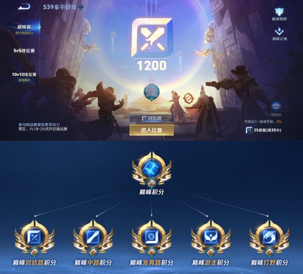 在早先的巅峰赛中,因为不同分路天然存在上分速率不同,导致主玩不同分路的玩家,最终的巅峰积分存在差异,而由于巅峰赛是以统一的分数进行排名和发放奖励,导致不同分路之间的玩家缺少公平性。新赛季巅峰积分由总分拆分成五条分路积分,每条分路独立进行排名。而且在匹配时,玩家只需要选择一条分路进行匹配,没有主次分路之分,并取消了补位。