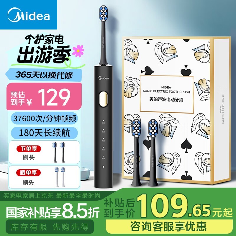 美的电动牙刷采用声波技术全自动清洁呵护牙龈