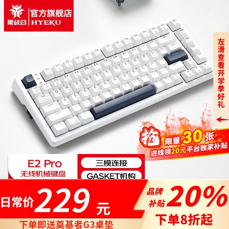 黑峡谷E2 Pro三模机械键盘凯华烟漠轴Gasket结构星光白