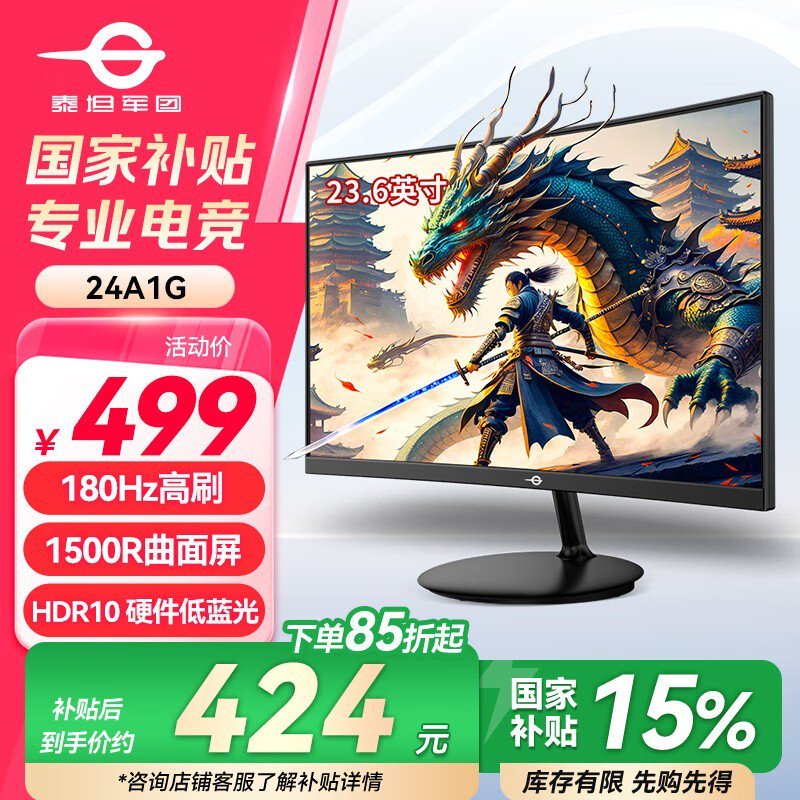 泰坦军团P24H3G电竞显示器180Hz仅499元抢