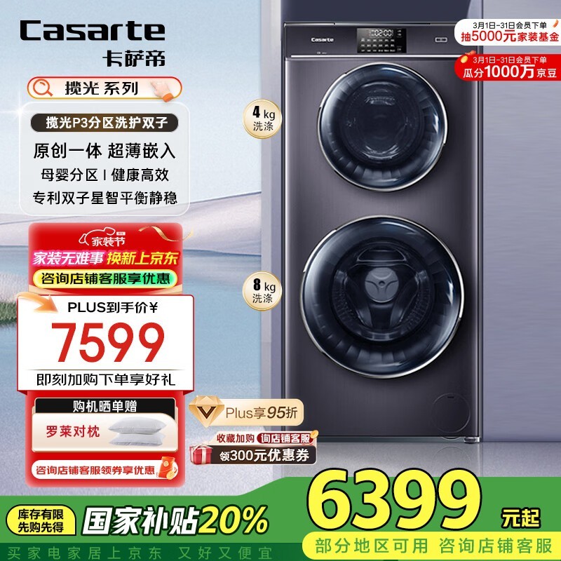 卡萨帝双子云裳C8洗衣机12kg上下分区洗护京东促销
