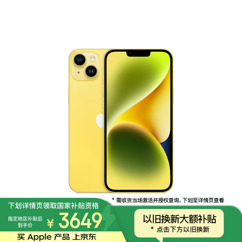 苹果iPhone 14 Plus 5G手机黄128GB京东国补15%低价促销