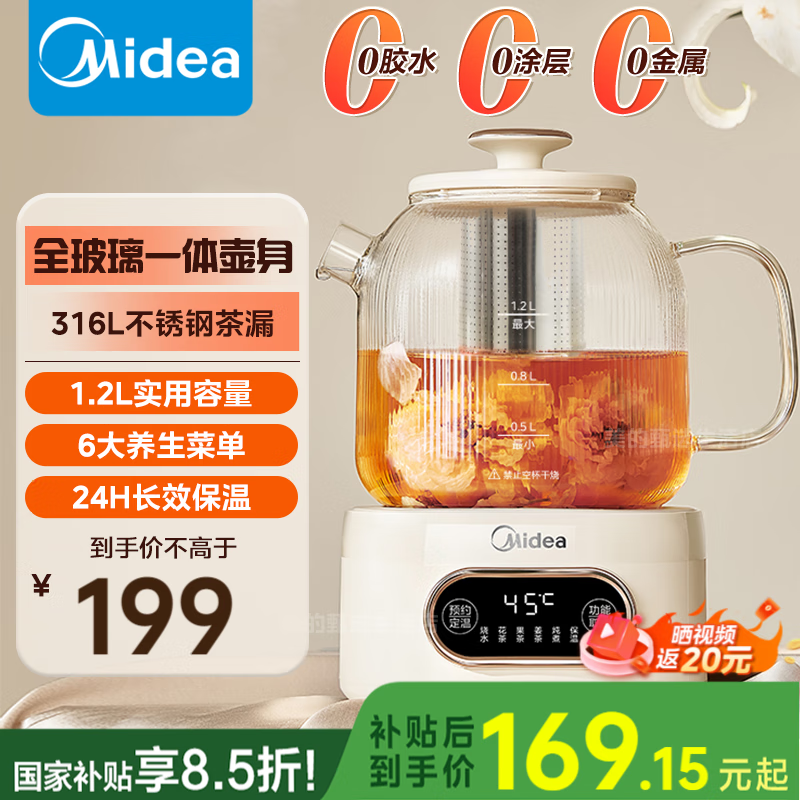美的全自动养生壶YS12B102京东国家补贴149元到手