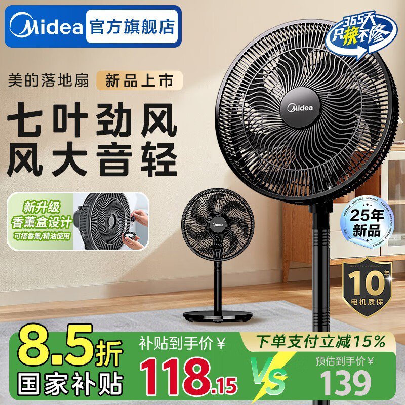 美的SAE35CB落地扇曜石黑超值价107元