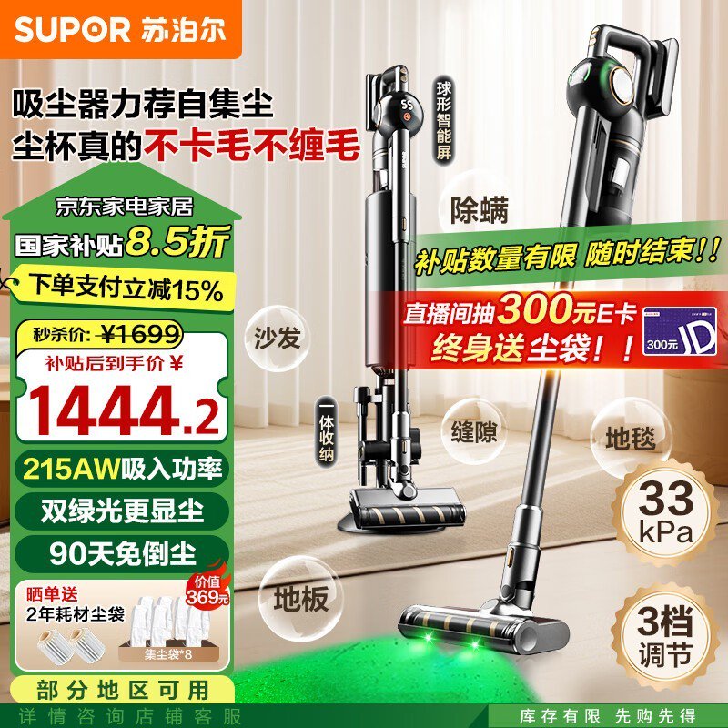苏泊尔C36MAX-SL自动集尘吸尘器强劲清扫绿光灰尘捕捉