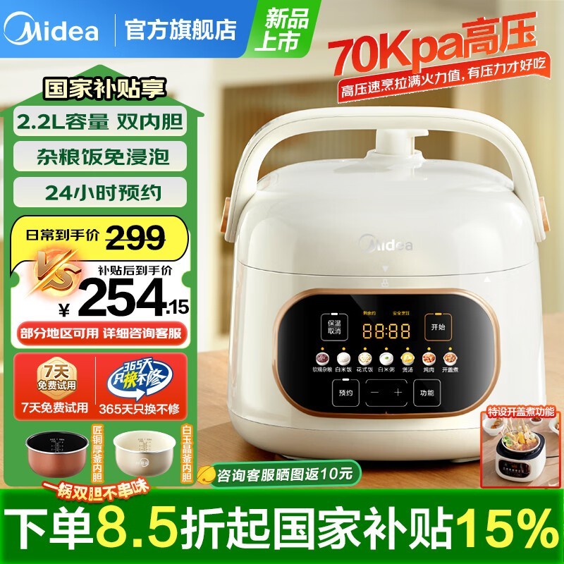 美的MY-C2945电压力锅白玉晶釜内胆高压技术煮饭专家