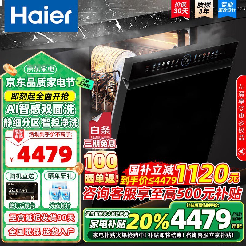 海尔W5000Pro云溪系列嵌入式洗碗机16套京东特惠3519元