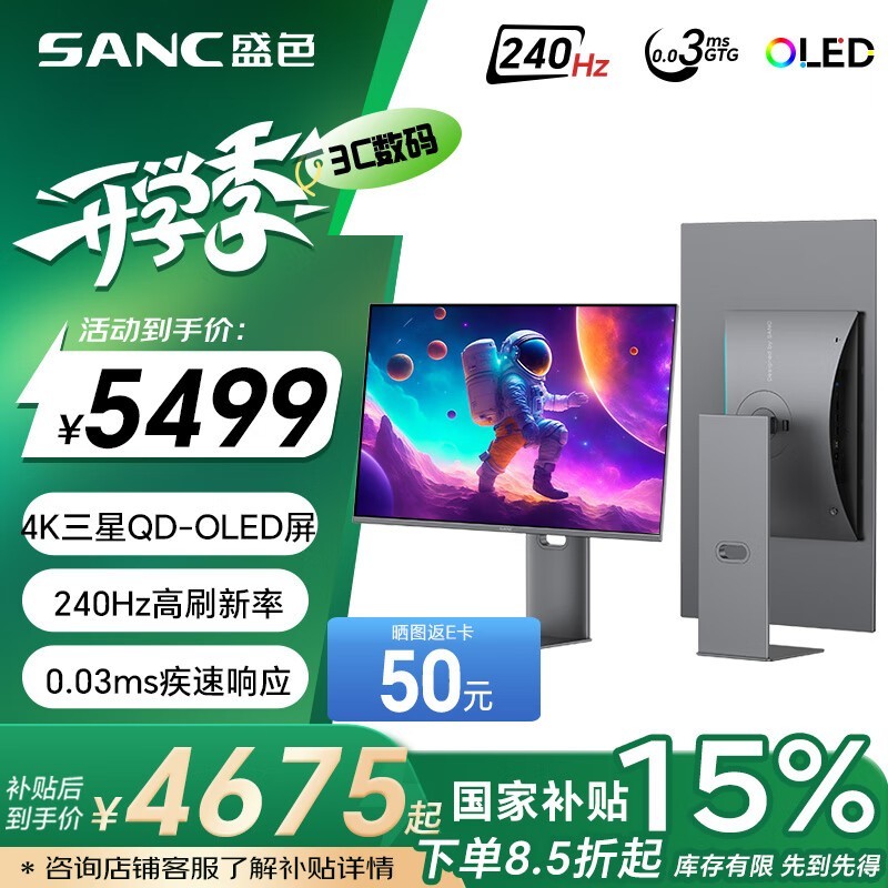 SANC OM32uPro电竞显示器4K 240Hz京东特惠至4475元