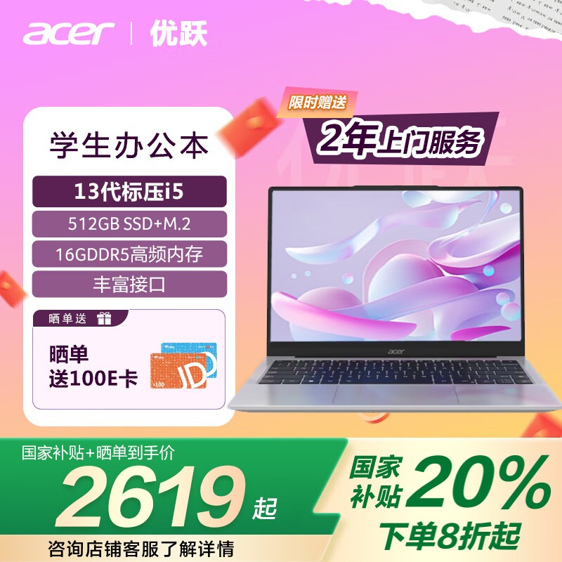 宏碁优跃14英寸轻薄本13代标压京东3299元到手