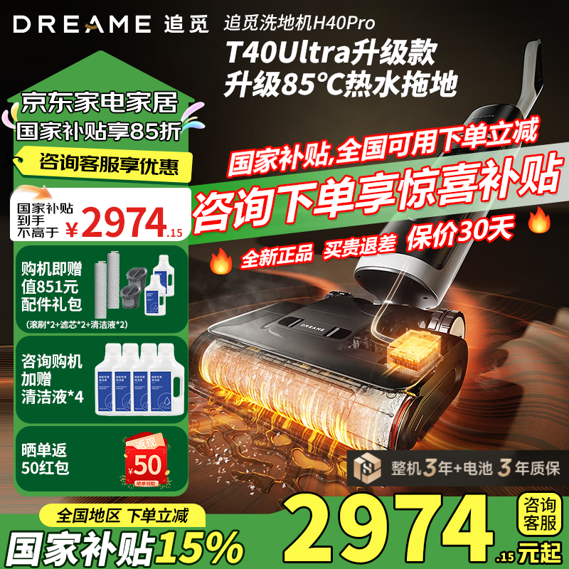 追觅Dreame洗地机H40 Pro智能清洁神器热水拖地灵捕AI机械臂
