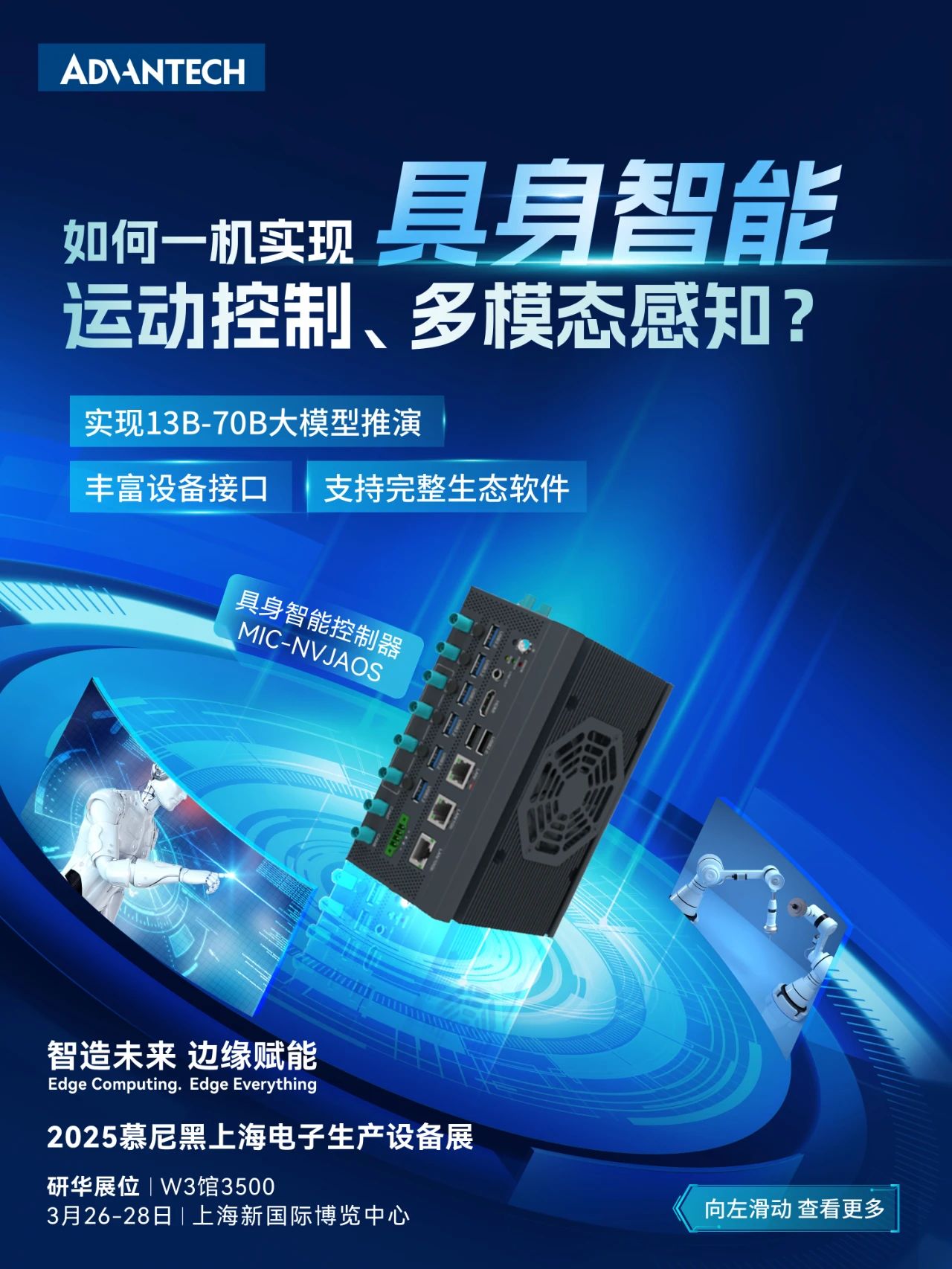 当然,现场方案远不止这些~现场更多内容等您探索!3月26-28日,上海新国际博览中心W3馆3500,研华与您不见不散~