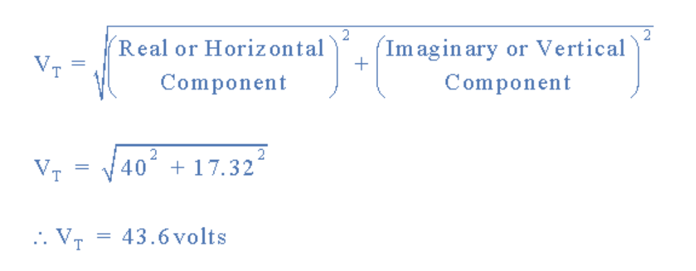 通过勾股定理计算90°三角形的斜边,得到VT的幅值: