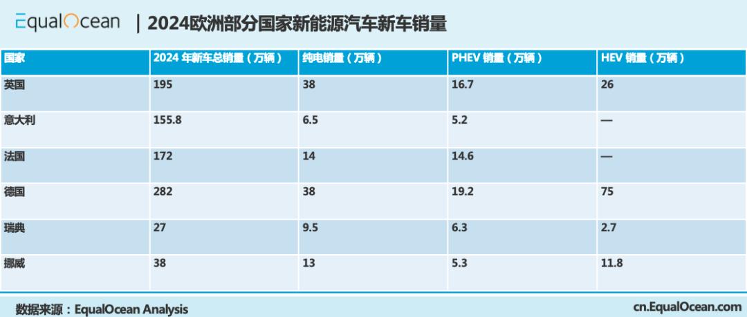 “车企去欧洲赚快钱?别做梦了,那是条死路!”在德国斯图加特,一位在保时捷工作多年的资深华人专家Jason对亿欧汽车如此说道。Jason并非危言耸听,他在欧洲待了数十年,从读书到成家立业,深知欧洲人的做事风格,“想靠短期利润救命的公司,欧洲市场趁早别碰。”他再次强调道。欧洲汽车制造商协会(ACEA)数据显示,2024年,欧洲(包括欧盟、英国和EFTA国家)的汽车销量规模为1296.36万辆,同比微增0.9%,是全球第三大汽车市场,仅次于中国和美国,亦是中国车企出海的核心市场之一。不过,欧洲,这片汽车工业的“圣地”,早已被百年老牌车企牢牢占据。从德国的BBA(奔驰、宝马、奥迪),到法国的雷诺、标致。对于欧洲人而言,这些品牌不仅意味着的是出行工具,更是他们文化和历史的象征。外来的新品牌想要在这里分一杯羹,无异于虎口夺食。但中国车企出海欧洲真的没有机会吗?并不是。亿欧汽车深入欧洲市场,对当地市场进行了深度调研,访问了多位行业资深专家,发现中国车企对欧洲市场存在几个认知误区,中国车企若能提前厘清,将有助于中国车企全面了解欧洲市场,制定更有效的出海策略。误区一:欧洲充电桩太少了大多数人认为,欧洲的电动汽车充电桩非常少,这其实是一个严重的误区。据亿欧汽车了解,近年来,欧洲在电动汽车充电基础设施方面取得了显著进展,各国政府通过加大充电桩投资和提高补贴额度来促进充电设施的建设。截至2024年,欧洲的公共和半公共充电桩数量已超过90万个,已经成为全球充电桩数量最密集的地区之一,仅次于中国和美国。从充电技术类型来看,欧洲充电桩市场以交流电充电桩为主,占据了84%的充电市场,而直流快充和超快充则分别占7%和10%的市场份额,直流快充桩的增长率更高。亿欧汽车了解到,欧洲的充电设施主要配备Type 2接口和组合充电系统(CCS),能满足不同用户的充电需求。据欧洲汽车制造商协会(ACEA)数据,2024年欧盟市场纯电动汽车销售量达144.2万辆,虽然同比下降5.9%,但如此规模的销量完全得益于欧洲日益完善的充电基础设施。所以,充电基础设施渐趋完备的欧洲市场,为中国新能源汽车出海提供了非常有利的条件。 对于欧洲市场,中国车企也无需再背负着充电焦虑的压力。误区二:PHEV节能环保,又省钱大多数人总把PHEV等同于新能源车,认为对于充电基础设施较弱的欧洲,PHEV是最佳选择。这存在着很大的误区,因为在欧洲,PHEV并不等于新能源车,既不节能,又不环保,更不省钱。首先,PHEV的核心是以内燃机为主,这在一定程度上是相悖于欧洲节能环保的理念。其次,在德国新车市场中,约60%-70%是企业级客户,仅30%-40%的新车是由私人购买。这就会造成企业购车更看重政府补贴和税收政策,而非油耗节省。换句话说,新能源车企若想要在欧洲发展,纯电车才是未来。浙江大学博士、ATTC汽车技术产业研究院长郑康在欧洲从0到1帮助众多车企进入欧洲市场,在他看来,PHEV的问题在于不够有品牌力、价格高,市场份额小,还充斥着其他强大的竞争者。郑康给亿欧汽车分享了两个欧洲车主的故事,一位PHEV的车主,一位是纯电车主,他们在购车需求与用车体验上形成了鲜明的对比。“之所以买PHEV,是因为我们没得选。”Eva是欧洲一位PHEV车主,谈起购买PHEV的经历,她苦笑着摇了摇头。Eva的家里共有五口人,但只有买一台车的预算,就需要这台车“身兼数职”:平时在市中心跑,新能源汽车能享受免费3小时停车的福利,家里还装了充电桩,充电倒是挺方便;可一到节假日,全家出动去长途旅行,又得靠燃油功能撑着。“当时选车的时候,我也挺纠结的。”Eva说道,“在欧洲,PHEV比纯电车和燃油车都贵,长途跑起来,电耗成本比油还高。孩子们倒是喜欢车里的智能功能,可我和我老公觉得,这些功能也就那样,有没有都无所谓。”但纠结归纠结,最后Eva还是选了PHEV。“没办法,我们家的情况摆在这儿,既要省钱跑市区,又要能跑长途,PHEV虽然不完美,但至少能两头兼顾。”Eva叹了口气,“说到底,选 PHEV就是个无奈之举。”Eva的情况并非个例。在预算有限的情况下,油车会是许多欧洲家庭的第一选择,在比油车稍高预算且预算不够买两台车的情况下,PHEV才是第二选择。“纯电车,开起来确实有意思。”一位欧洲的纯电车主Jim笑着说道。Jim家里有两台车,一台燃油车,一台纯电车。燃油车专门用来跑长途,纯电车则是他的日常通勤搭档。“市区里开电车特别顺手,偶尔跑长途也没问题,现在高速上到处都是快充充电桩,挺方便的。”他顿了顿,“不过,跑长途时,电车的充电费用可比油车的油耗贵多了。”尽管如此,他对纯电车的驾驶体验依然赞不绝口。“加速快,开起来安静,感觉完全不一样。”他说这话时,眼里带着一丝兴奋。这两个故事看似简单,却折射出欧洲新能源汽车市场的复杂性和多元化。值得注意的是,PHEV的核心动能还是燃油发动机,欧洲车企在该领域依然保持着强劲的领先优势。而中国真正具有竞争力的动力电池等三电体系在PHEV上的优势并不明显。这意味着,中国车企在欧洲市场推出PHEV,并非是一个明智之选。亿欧汽车了解到,在欧洲市场的PHEV车型主要有:比亚迪秦,唐,汉,宋系列,上汽荣威系列,领克PHEV系列等。此外,欧洲市场的纯电车型主要有:特斯拉系列、蔚来汽车、威马汽车、小鹏汽车、日产聆风、宝马i3、比亚迪e6、e5、秦EV、唐EV,北汽EV系列、EU系列,奇瑞艾瑞泽5e