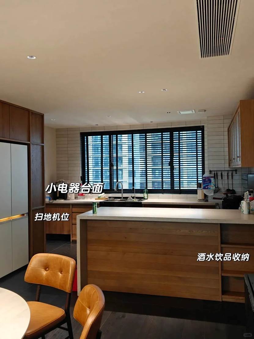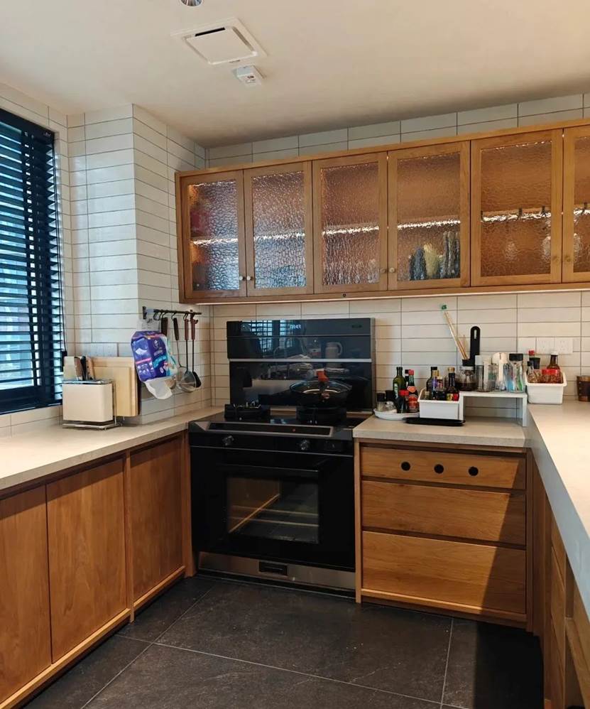 装修风格:轻奢风格,石英石台面搭配木纹橱柜
