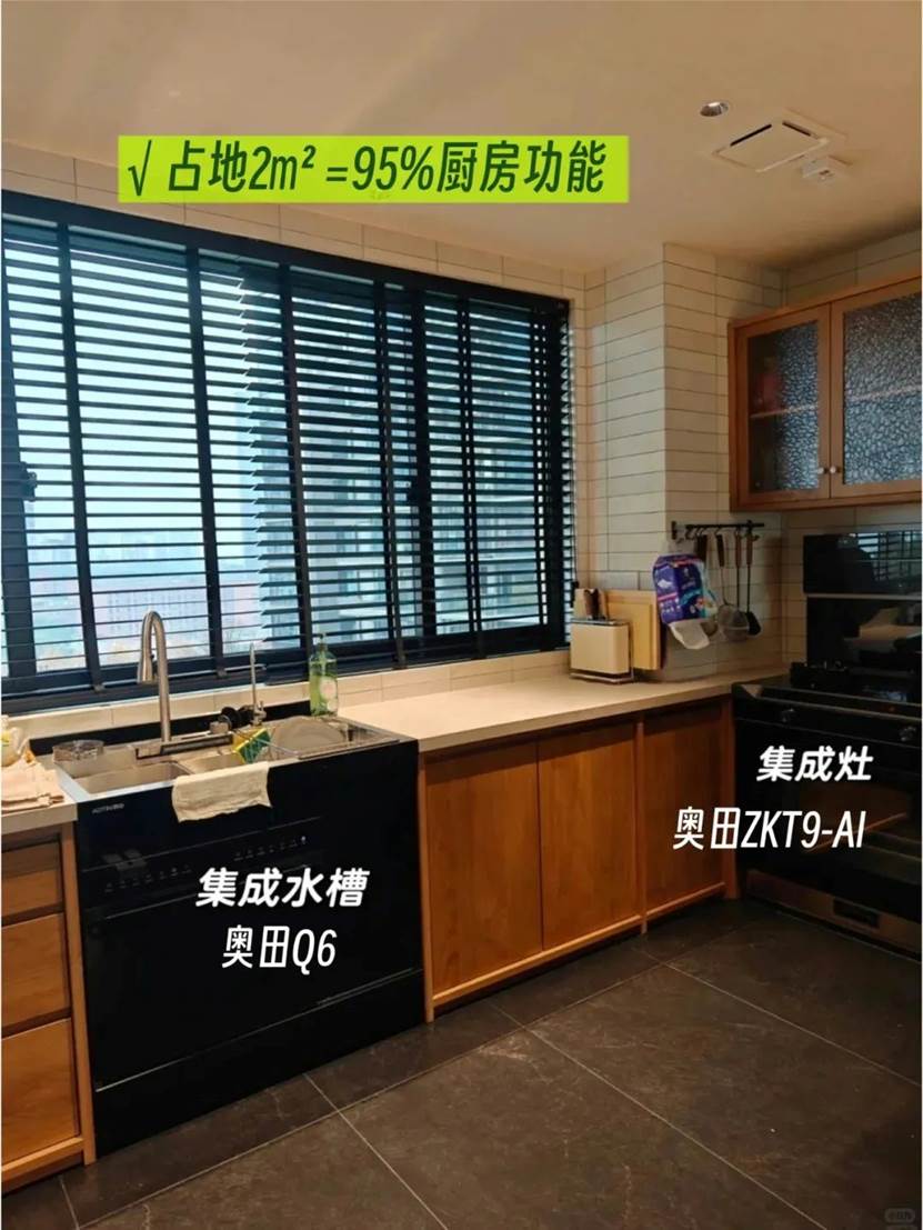 "搭配奥田集成水槽Q6,仅占地2㎡,动线合理空间利用恰到好处。"