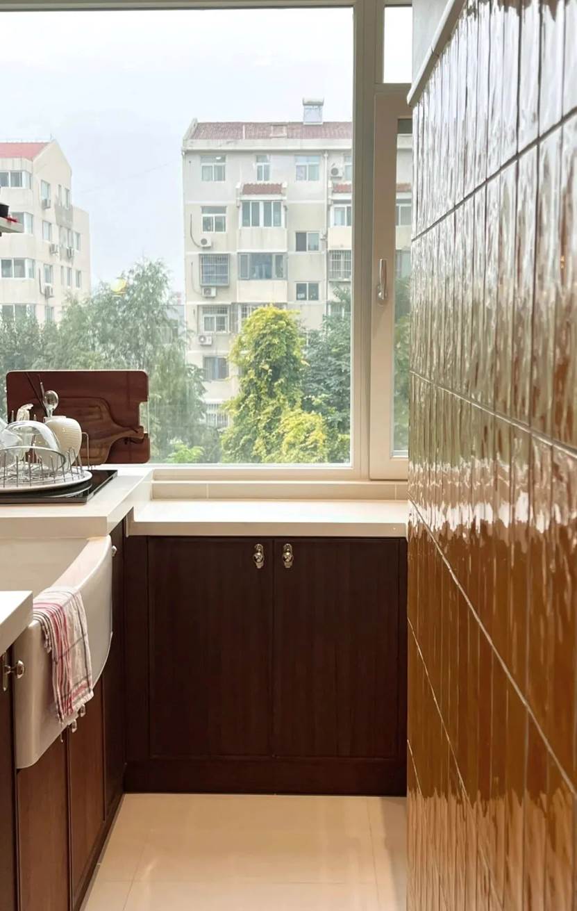 装修风格:轻奢风,石英石台面搭配木质橱柜