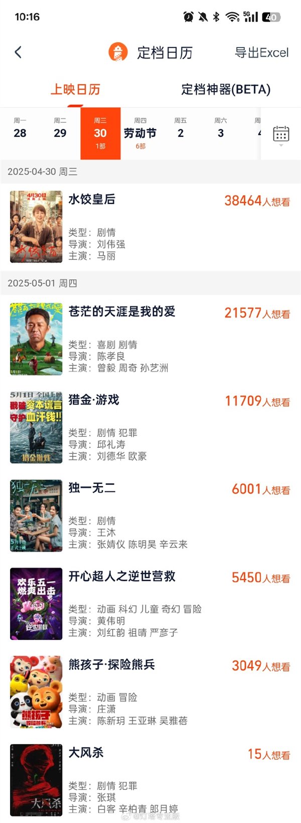 根据灯塔专业版上映日历显示,截至目前已有7部影片确定于同一时间上映: