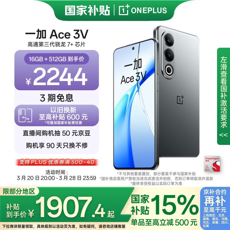 一加Ace3V5G手机钛空灰幻紫银双色可选仅2204元