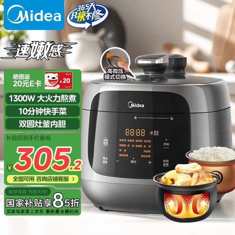 美的电压力锅京东特惠到手仅196元