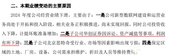 值得一提的是,在华创证券母公司华创云信此前发布的2024年年度业绩预告显示,华创云信在2024年的归属于上市公司股东的净利润在4000万元至6000万元,同比降幅为91%至87%。华创云信在解释公司业绩变动的主要原因中提到“子公司华创证券因诉讼、资产减值等事项,利润有所下降”。目前,华创证券2024年年报尚未公布,相关具体情况尚未披露。
