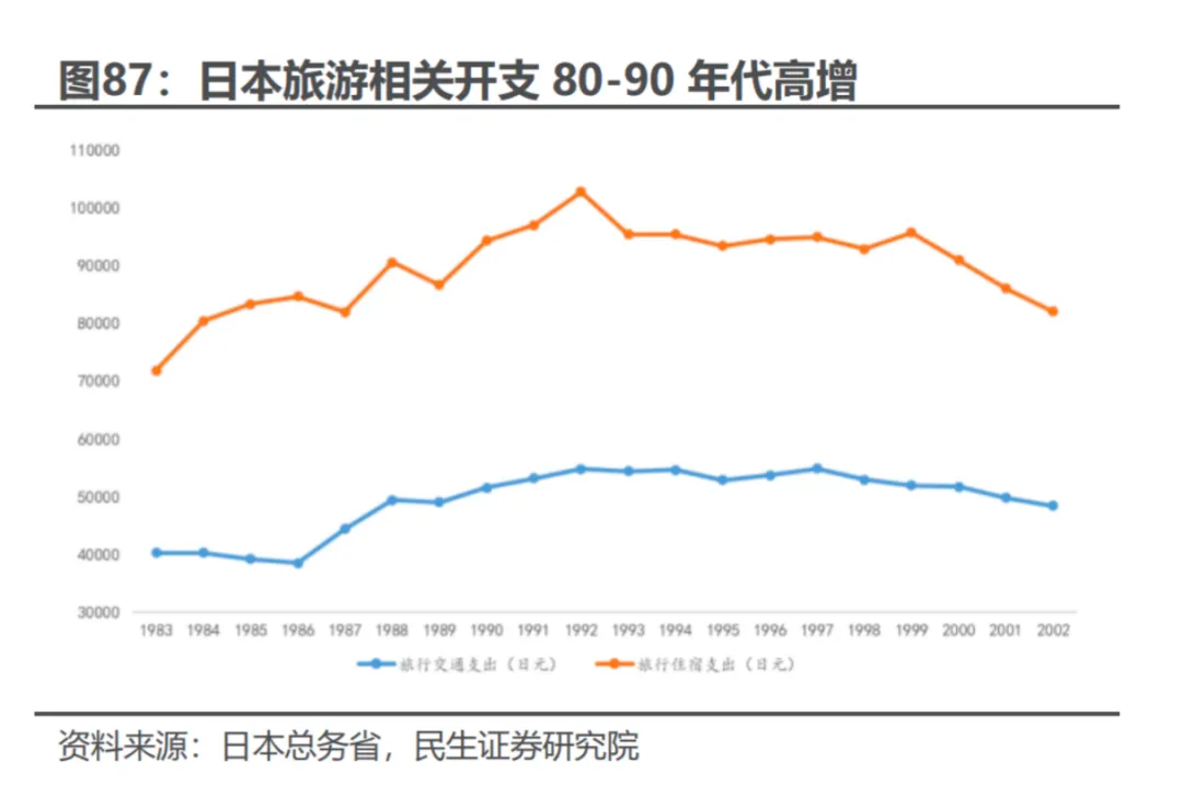 日本在90年代初经历了经济泡沫破裂,随后进入“失去的30年”。相比当前国内经济面临的挑战,日本当时的衰退更为严重。然而,从服务消费的角度来看,我们发现: