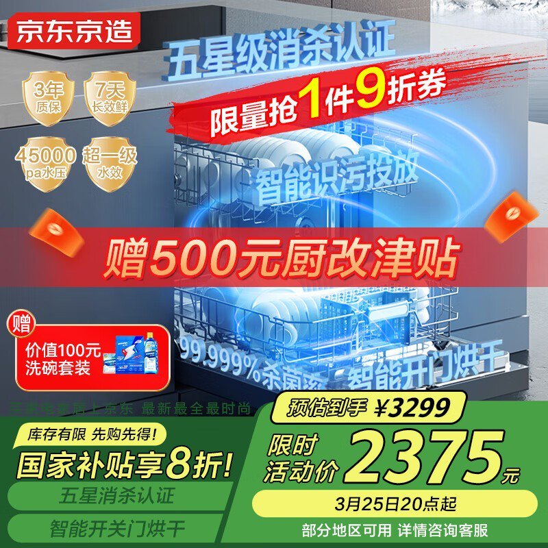 京东京造JZMGX - 16嵌入式洗碗机促销价2364元