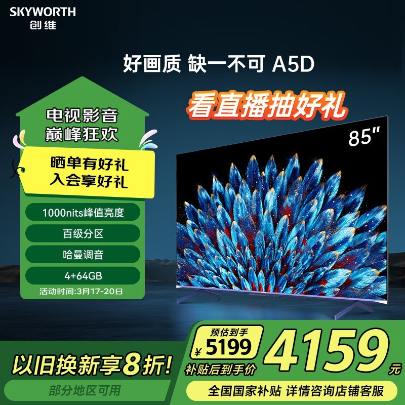 创维85A5D液晶电视京东plus会员专享立减优惠
