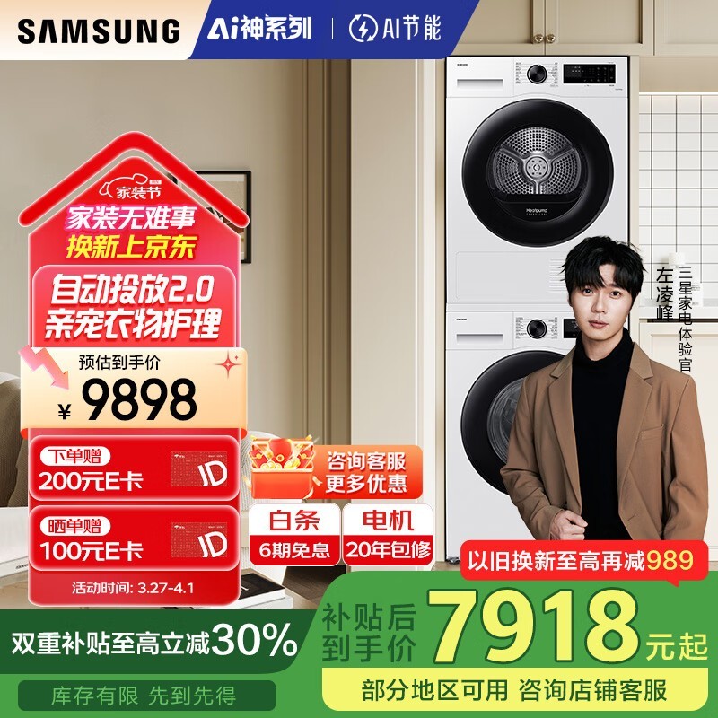 三星AI神5系洗烘套装12KG+11KG月光白京东到手6980元