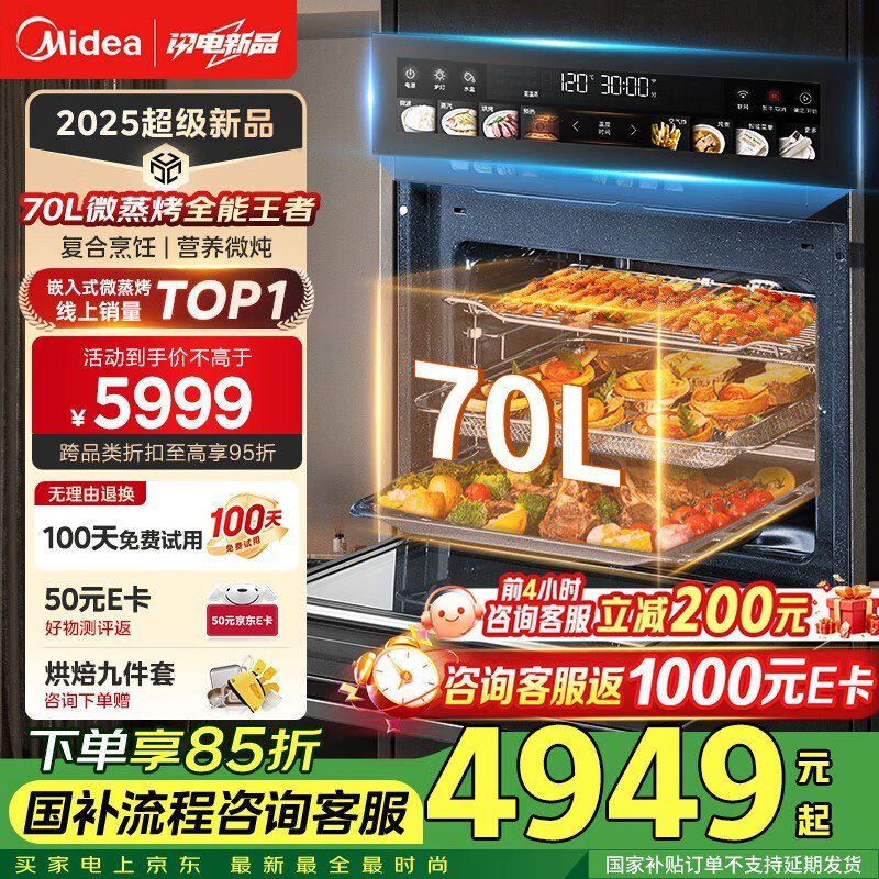美的70L知味GC7微蒸烤炸炖一体机京东优惠