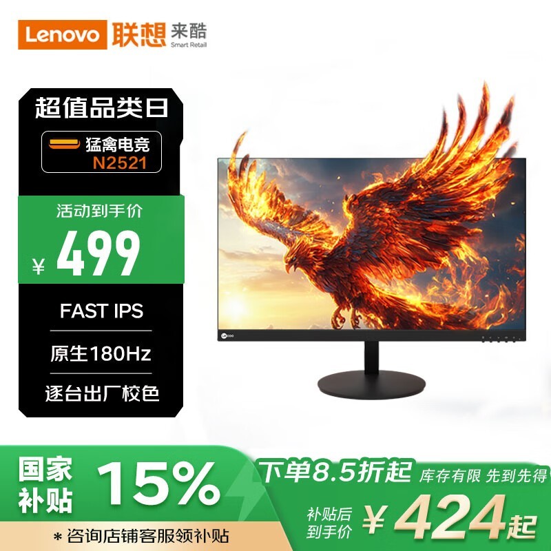 来酷N2521电竞显示器180Hz高刷仅405元
