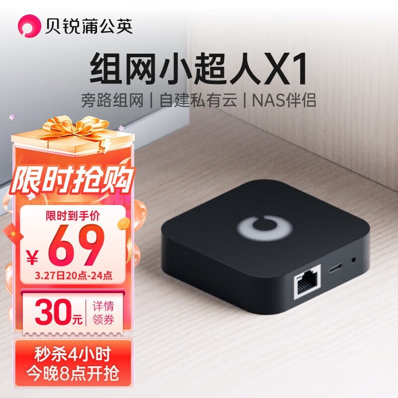 蒲公英路由X1旁路组网盒子黑色简约设计京东商城限时优惠