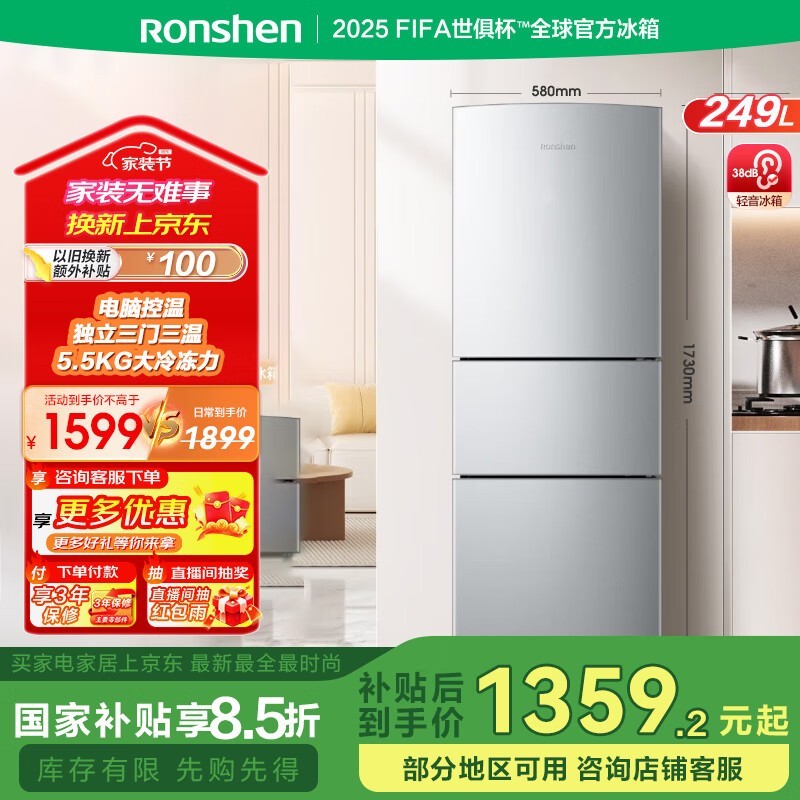 容声249升三门冰箱 京东仅需1019元