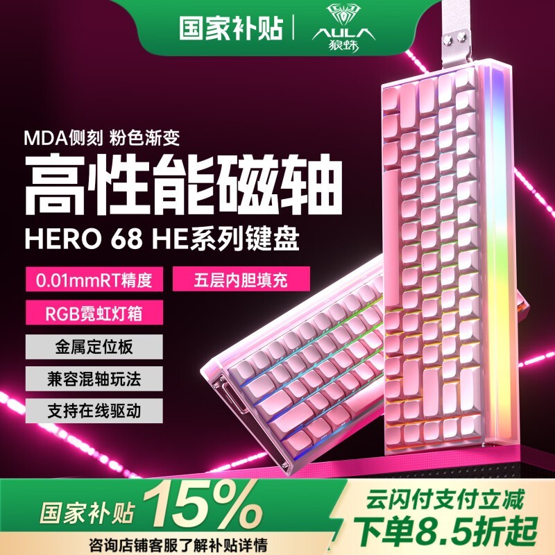 狼蛛HERO 68HE有线键盘 172元超值入手