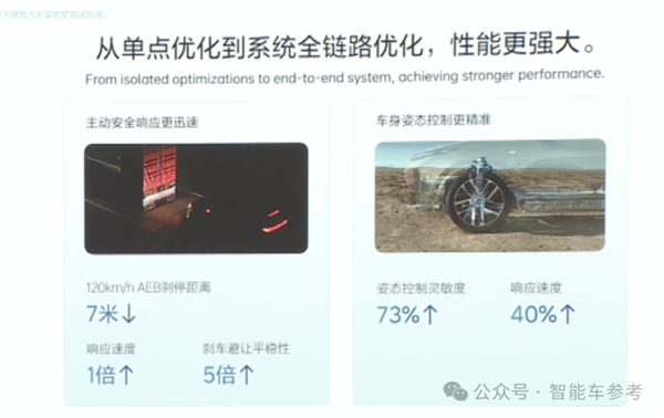 据李想介绍,其自研OS比AUTOSAR响应快1倍,稳定性提高5倍。体现在具体功能上,就是120km/h时速下AEB刹停距离能够缩短7米。