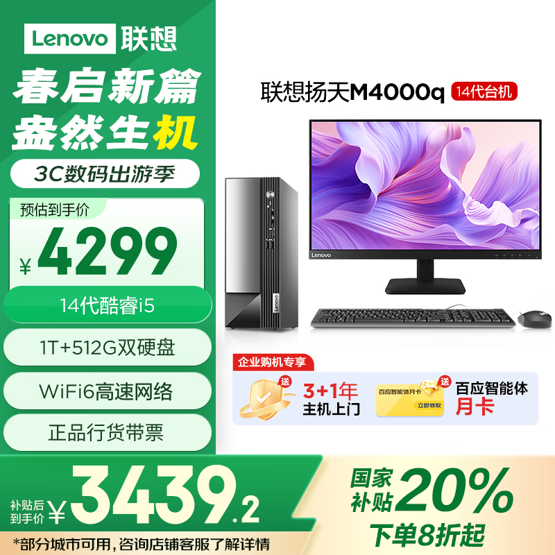 联想扬天M4000q主机 补贴后低至3439元