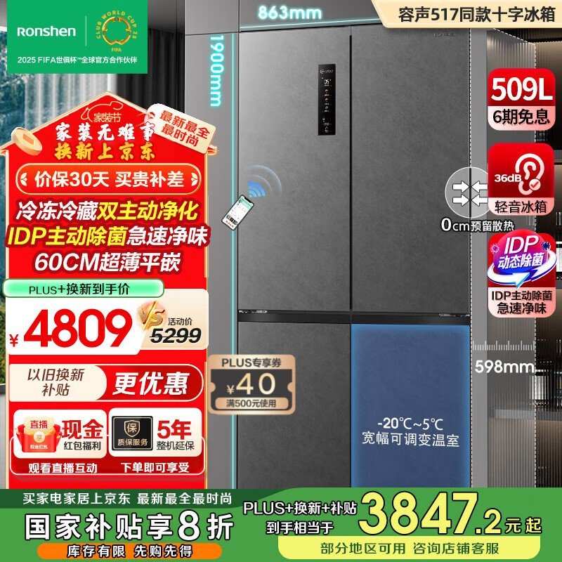 容声509升冰箱 多种优惠后到手3698元