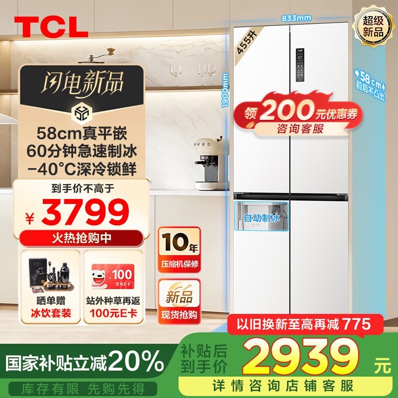 TCL风冷十字对开门冰箱R455T9-UQB促销信息