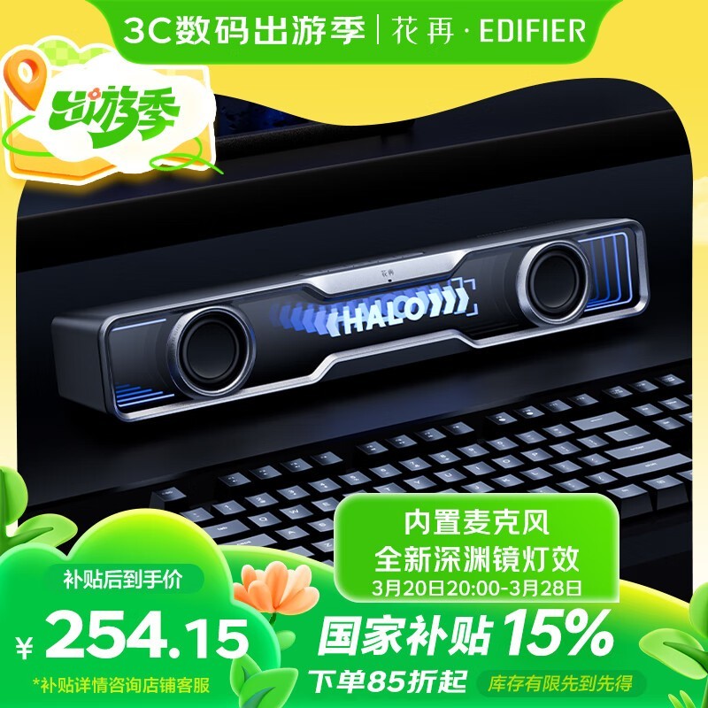 EDIFIER花再Halo SoundBar电竞桌面音响双色可选优惠中