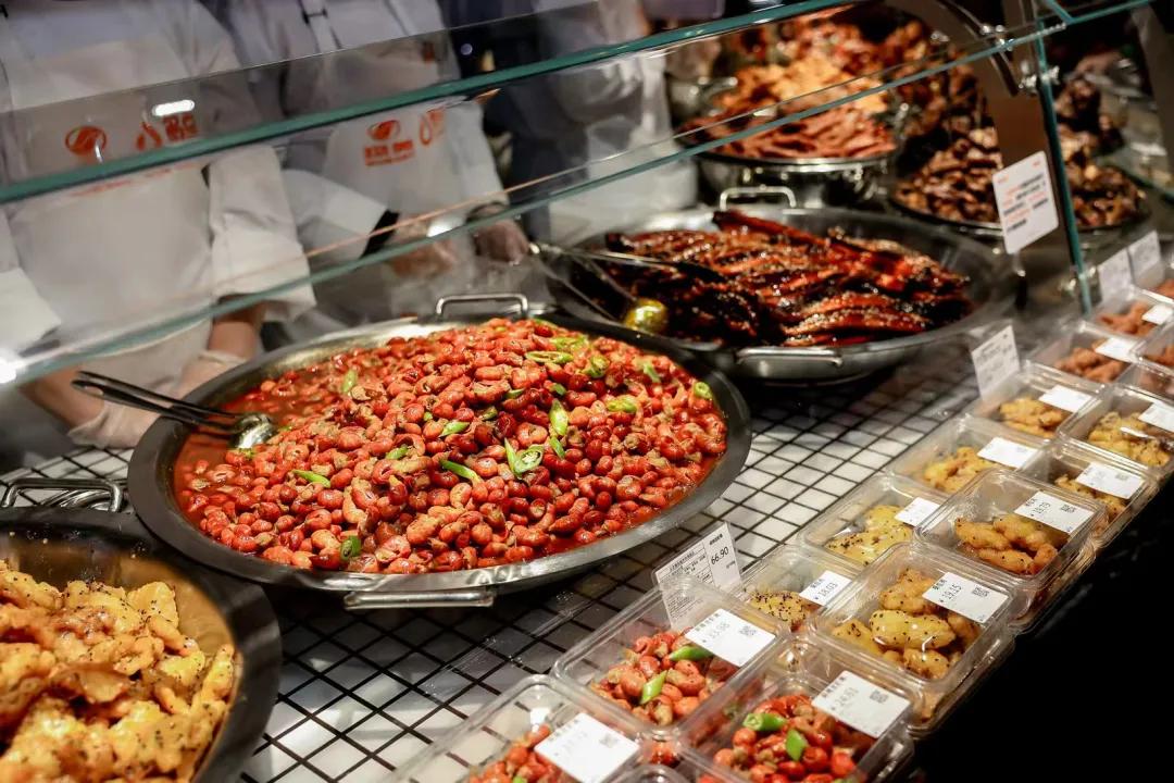 这也是整个超市最拥挤的区域,几乎每类熟食都可以试吃,吸引了很多人。“挺大方,炸鸡都是整块给。”李玉开玩笑地说。生鲜区里,海鲜是现捞沥水、包装袋去重,杀鱼可以现场切片,超市还为各种春季鲜菜制作、红酒配餐、火锅食材的最佳涮煮时间等做了“小贴士”。