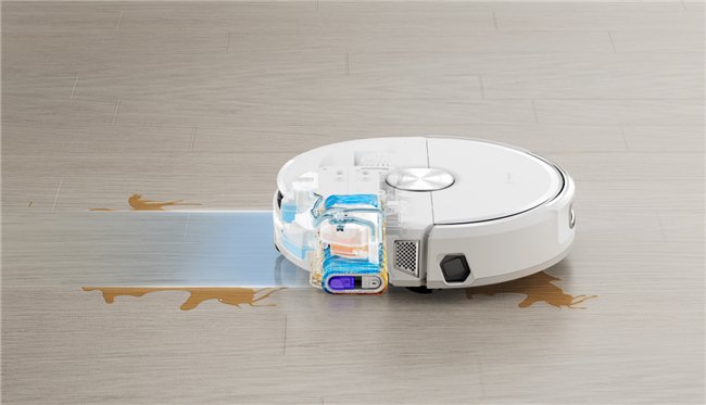 在清洁能力上,云鲸逍遥002首次搭载热活水循环清洁系统,创新采用履带拖布形式,并在机身配备清污双水箱,在清洁过程中会用45℃水实时清洁拖布和回收污水,实现了“即拖即净”的高效清洁效果;同时率先实现了履带无极外扩技术,在履带外扩清洁边角时仍可保持12N恒压下压力,能够有效清除边角顽固污渍。