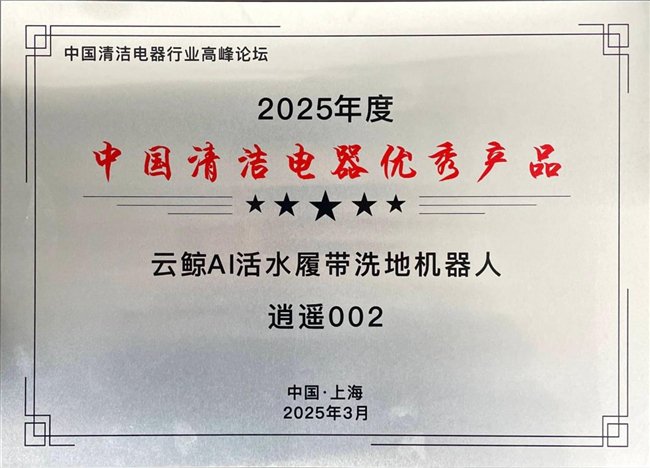 此次云鲸逍遥 002 荣获 “2025 年度中国清洁电器优秀产品” 奖,不仅是对云鲸智能在技术创新和产品研发方面的高度认可,也为清洁电器行业的发展树立了新的标杆。未来,云鲸将继续秉持创新精神,不断推动智能家用机器人产品的升级,为全球用户带来更加自由美好的智能生活。