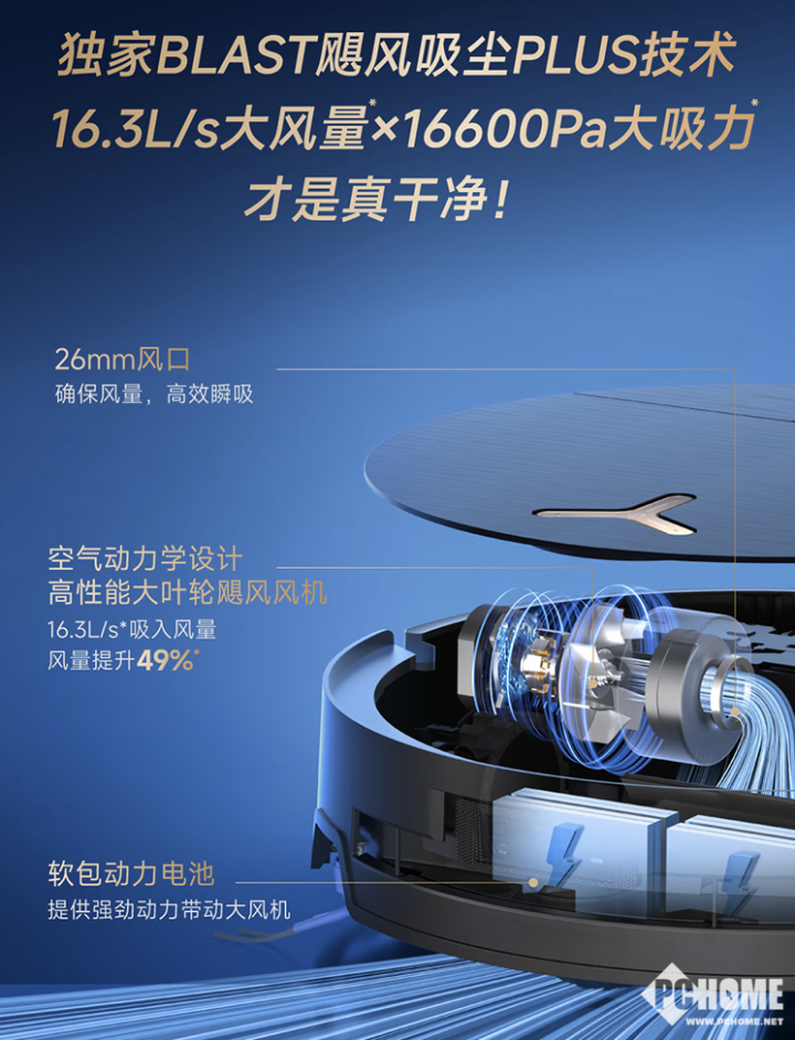 当行业沉迷于"吸力参数军备竞赛"时,科沃斯研发团队率先突破认知边界,提出"帕数≠清洁力"的技术认知。地宝X9 PRO通过动力电池、100W高扭矩电机与符合空气动力学的风机扇叶改造三重协同,在实现16600Pa真空度的同时,还有着16.3L/s大风量,地毯除尘效率提升137.6%。这种技术创新颠覆了传统吸尘清洁维“Pa”论的参数指标体系,使清洁效率真正回归应用本质。"清洁革命的本质是流体力学与材料科学的完美结合。"地宝X9系列研发负责人指出。
