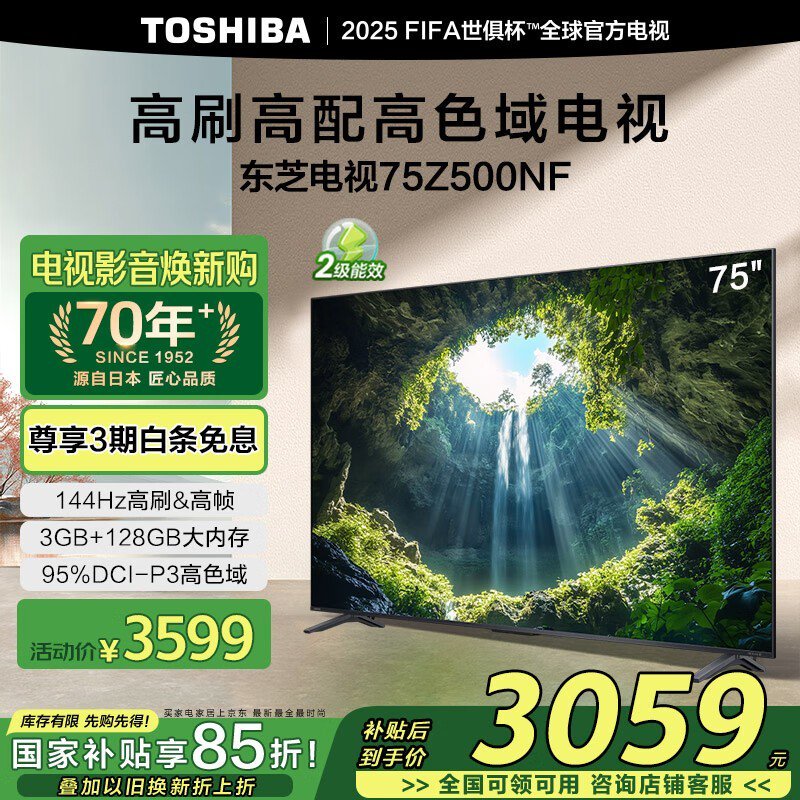东芝75Z500NF 75英寸电视京东优惠价3059元
