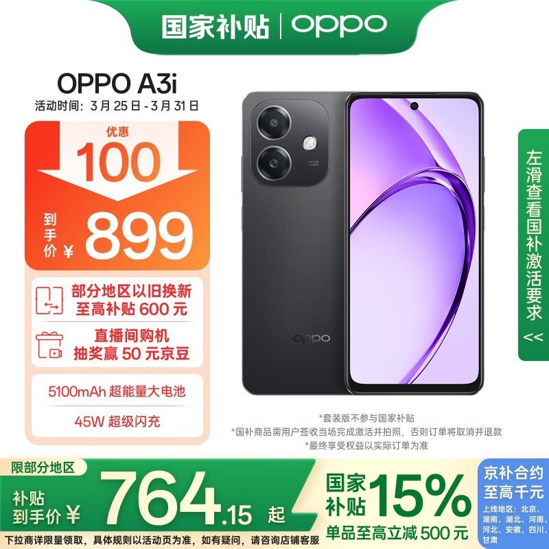 OPPO A3i 5G手机8GB+128GB京东到手仅859元